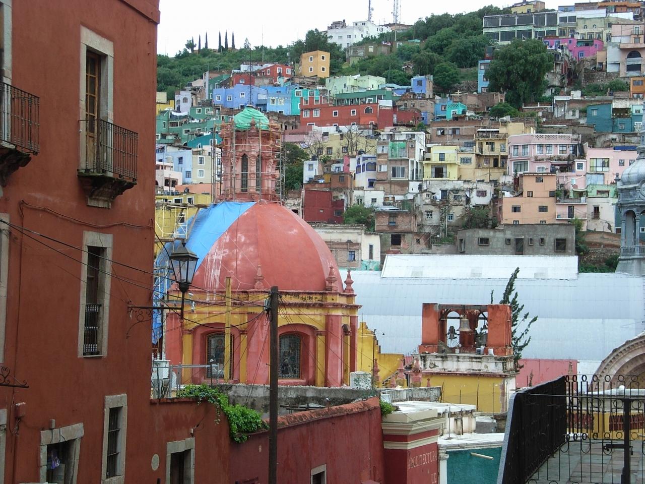 函館、神戸、尾道、長崎のように家が坂にへばりついている。前者の都市との決定的な違いは、家の色使い。そして、前者の年は全て港町であるが、グアナファトは2000mの高原に位置する都市。