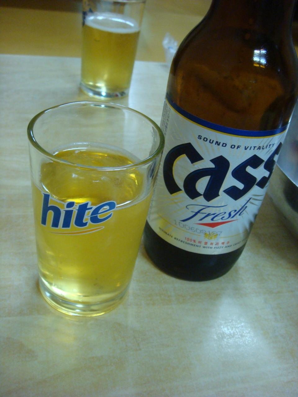 まずは、ビールで乾杯。この日のソウルは、とても暑い日で、気温が30度ありました^^;