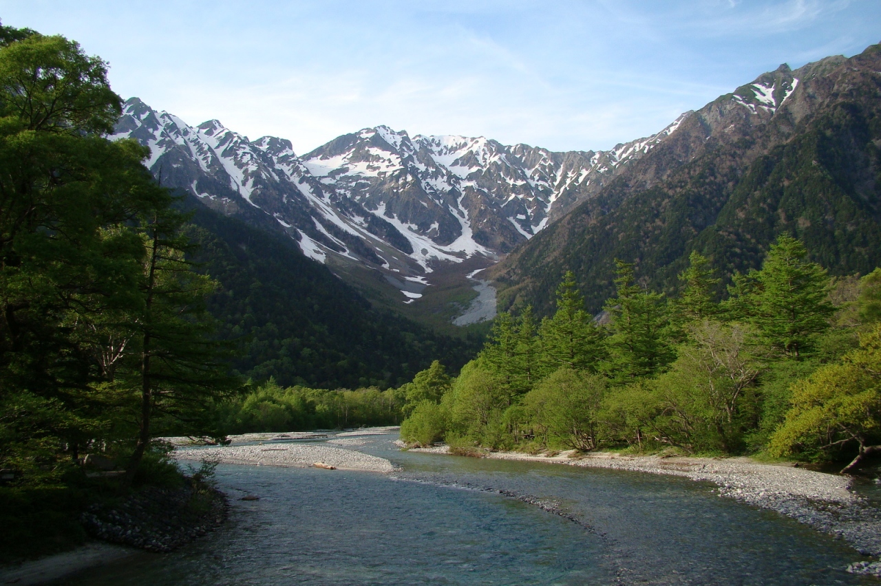 ガイドウォークで歩いた梓川左岸は比較的まっすぐな、砂利で整地された歩きやすいルートです。