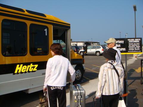 ハーツのシャトルで空港ターミナルへ向かいます。 -