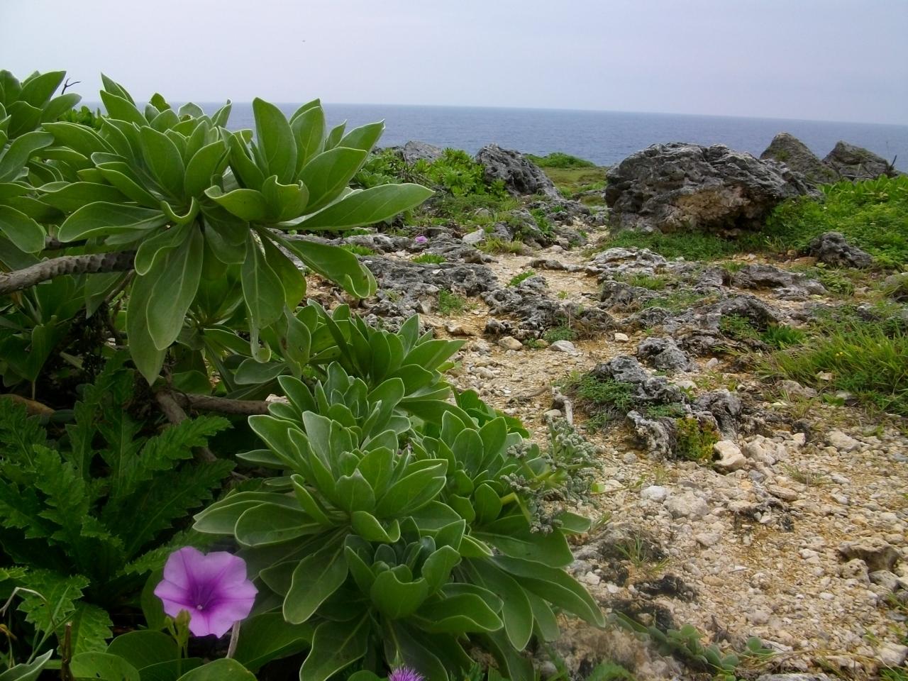 「崖の端っこまで行ってるヒトいるでしょー。最南端の端まで行きたいと思ってるみたいやけど、さっきのとこがホンマの最南端。ここはそこがよく見えるとこ。あの人達残念やな〜」