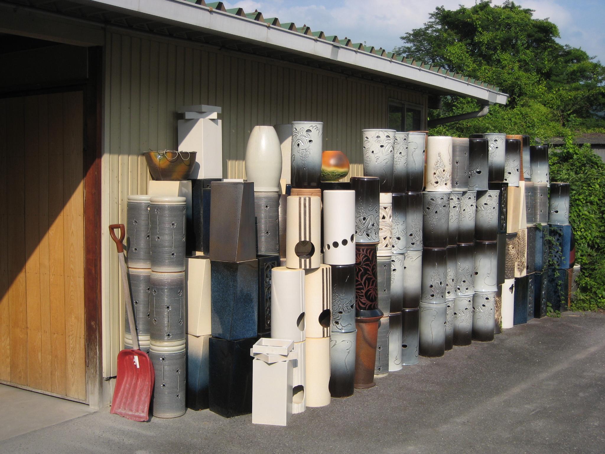道端に焼物いっぱい放置する、ガードの甘い風景に田舎を感じる。 -