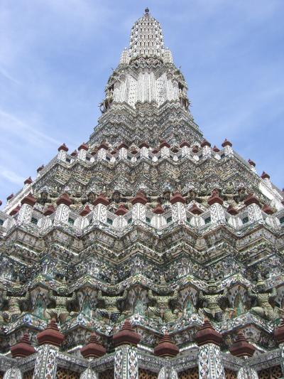 ワット・アルンは周辺の金ピカ寺院に比べると地味に見えますが、よく見ると陶器の装飾がとても美しく、渋い魅力がある場所でした。