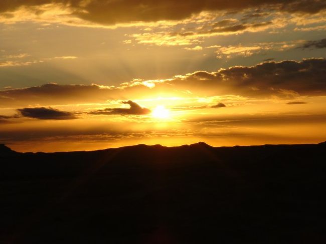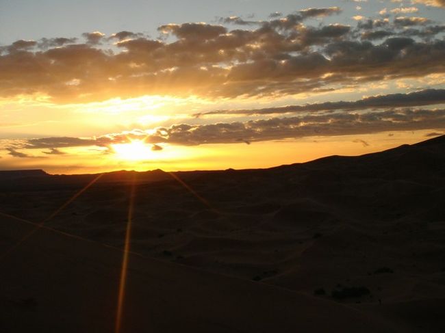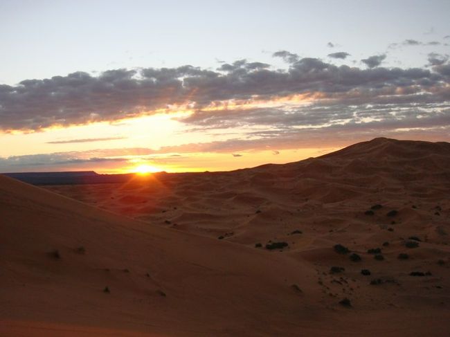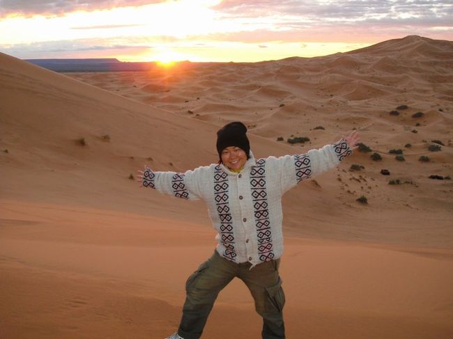 なぜかA男はなみおのテントに泊まり超迷惑・・・。彼の寝言とイビキが酷く、あまり寝れなかったけど、翌朝サンライズを見る為、かなり早く起きた。やっぱりサハラ砂漠で眺める日の出は、美しい。もっとノンビリしたかったけど、このツアーはサンセットとサンライズを見るツアーだった為、また恐怖のラクダに揺られオベルージュに戻るのだった・・・。