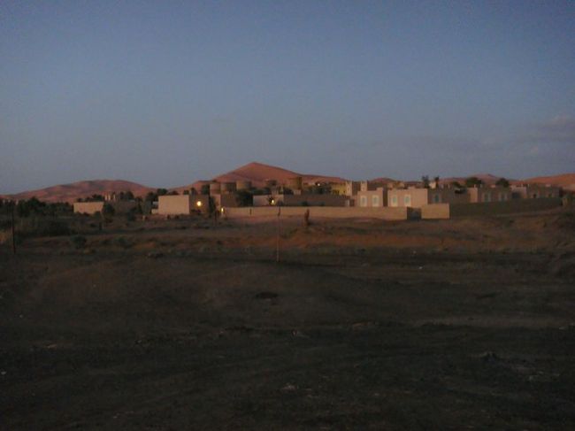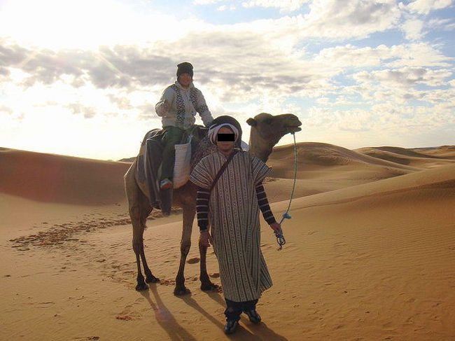乗り合いタクシーを乗り継いで行ったもんだから、思いの外、時間が掛かってしまった。サハラ砂漠に向けてメルズーガのオベルージュをラクダで出発したときには、日が落ちてしまっていた。残念ながらサハラでサンセットは、見れなかったけど、夜、真っ暗な中、普通では味わえないラクダとの旅が始まった。