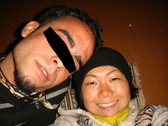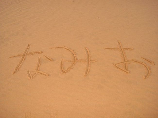 大分暗くなってくると星が出始め、ラクダに揺られながら星空を眺めた。こう書くとなんてステキな時間なんだろう、と思うかもしれないが、本当にしんどかった。ラクダは、ウワサ通り乗り心地の悪い動物で、上りは楽だけど、下りがキツかった。ハンドルをギュッと握り、後ろに重心を置かなければいけないので2時間も乗っていると、お尻やら手の平、腕がかなり痛くなった。しかもなみおのラクダ、ミミはブチャイクな顔が憎めないのだけど、あまりお利口さんじゃないもんだから何度も振り落とされそうになった。特にミミから降りるときが最悪だった。突然、前屈みにしゃがむもんだから、マジ落っこちるかと思い、踏ん張ろうと足と腕で使ったことのない筋肉を使ったもんだから、足がツッてしまいアリエナイ痛みに襲われた・・・。
