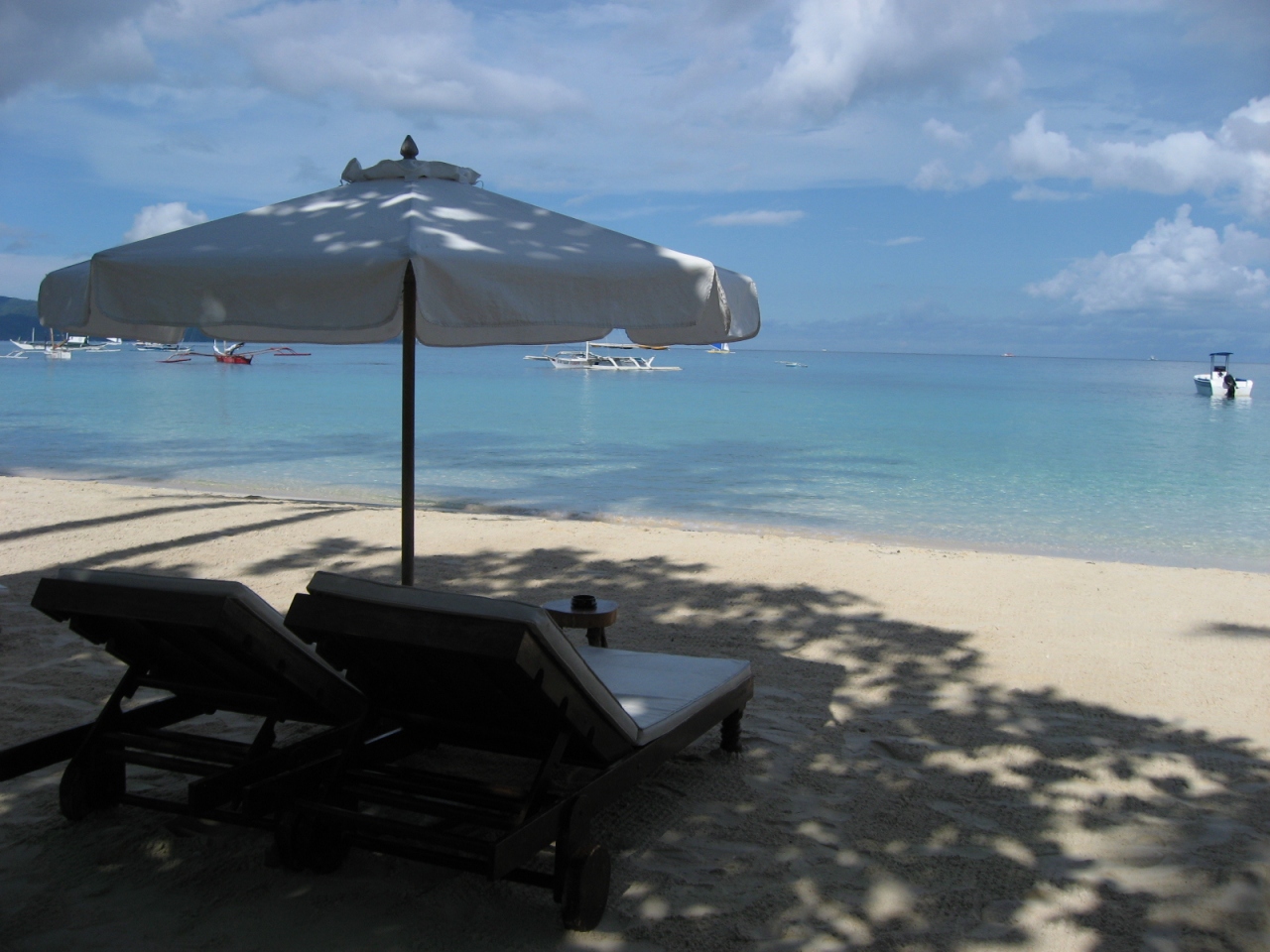 ビーチでおばちゃん達がマッサージの呼び込みをしているので(350ペソ≒700円)、やってもらおう。ビーチのパラソルの下でのマッサージなんて、これまたぜいたくぅ〜