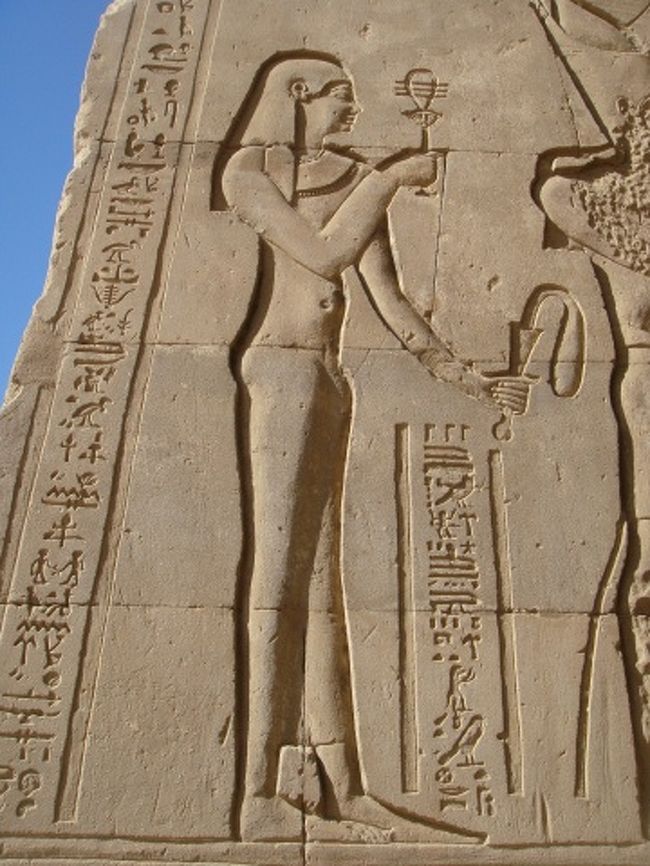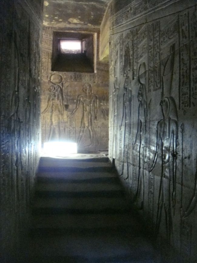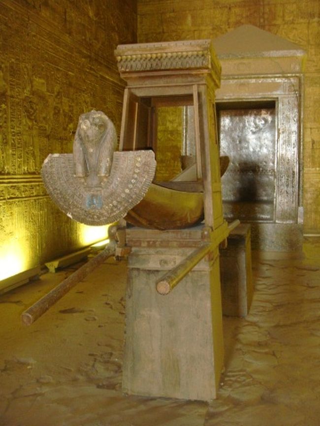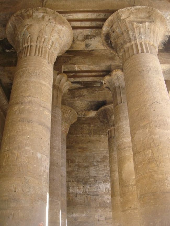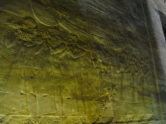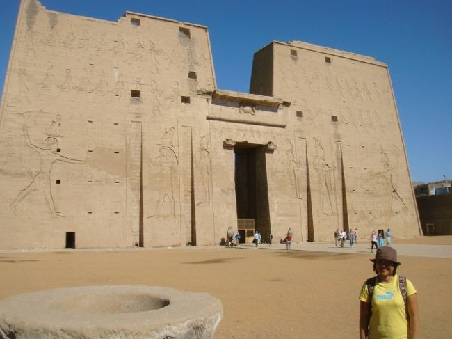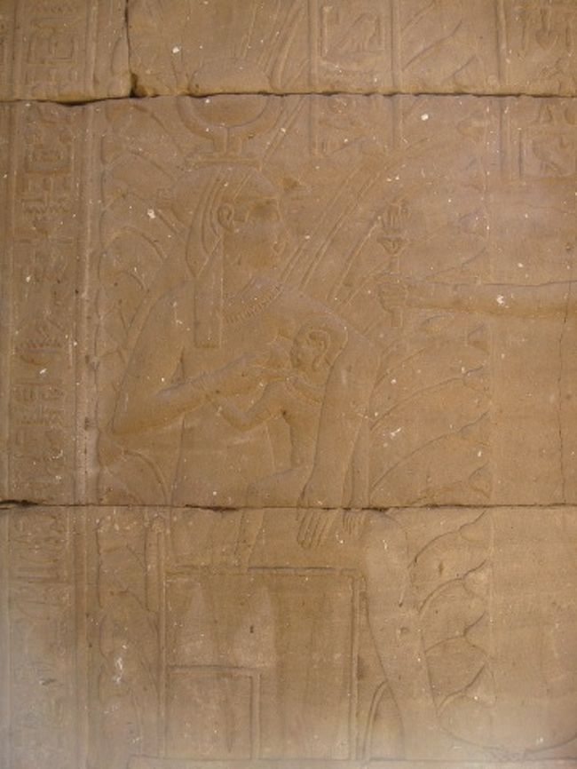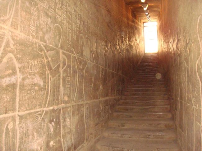 「コム・オンボ神殿」の後に向かったのは、エドフにある「ホルス神殿」。ここは、その名の通りホルス神を祀った神殿で、ホルス神のデカイSTATUEやレリーフが致る所で見られた。中でも誕生殿の母ハトホル神が赤ちゃんホルス神におっぱいをあげているレリーフは、興味深いなぁと思った。