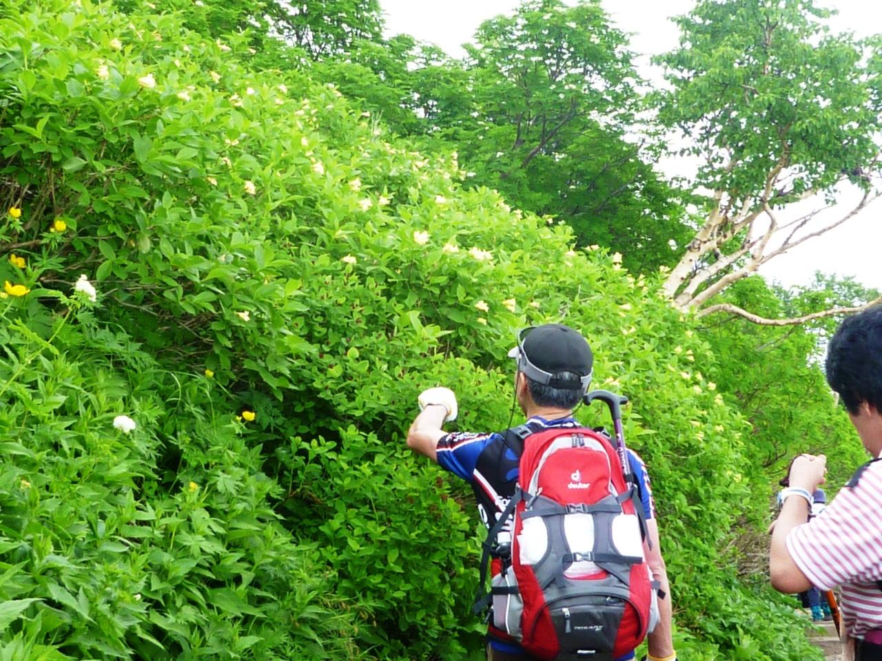 ウコンウツギの群生のなか、前を歩くはなかみno王子様とツーリスト今中様。