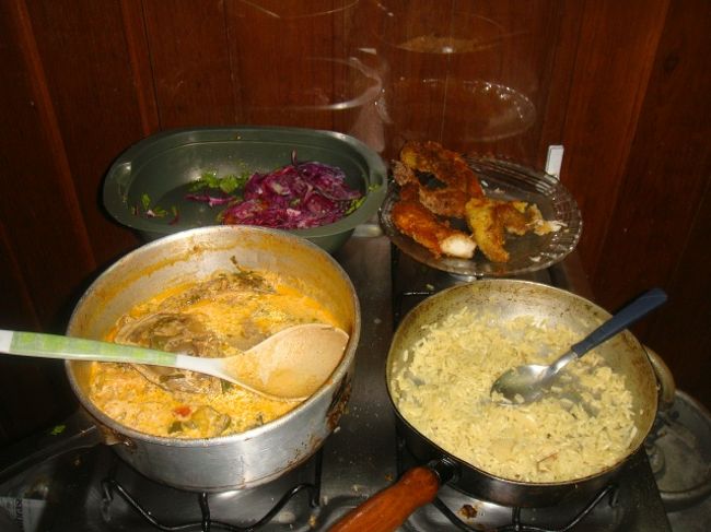 実はなみお、治安の問題がある地域を歩いて気が張っていたせいか、朝から何も食べていなかった。お腹ペコペコだったから「エスタサン・ダス・ドッカス」に戻りディナーをしようと思ったけど、雨は一向に止む気配はなかった。かといってまたインスタントラーメンを食べる気にはならず、どうしようかなぁと思っていると、宿のお姉さんが昼の残りがあると他の従業員のおばちゃんが作ってくれたブラジル料理を分けてくれた。ライスに魚のフライと魚をココナッツみたいなやつで煮込んだ奴となかなか美味しかった。
