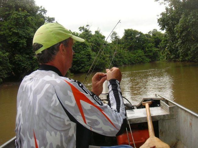 夕方からはアマゾン河に釣りに出掛けた。実はなみお、釣りは大の苦手・・・。誰でも釣れる釣り堀でさえ一度も魚を釣れた試しがないのだ。クラウジョウとお手伝いのおじさん、これまたクラウジョウが何匹も長いアゴヒゲが付いたデカイ魚を釣る中、なみおは一匹も釣れずボケーッと見ていた。