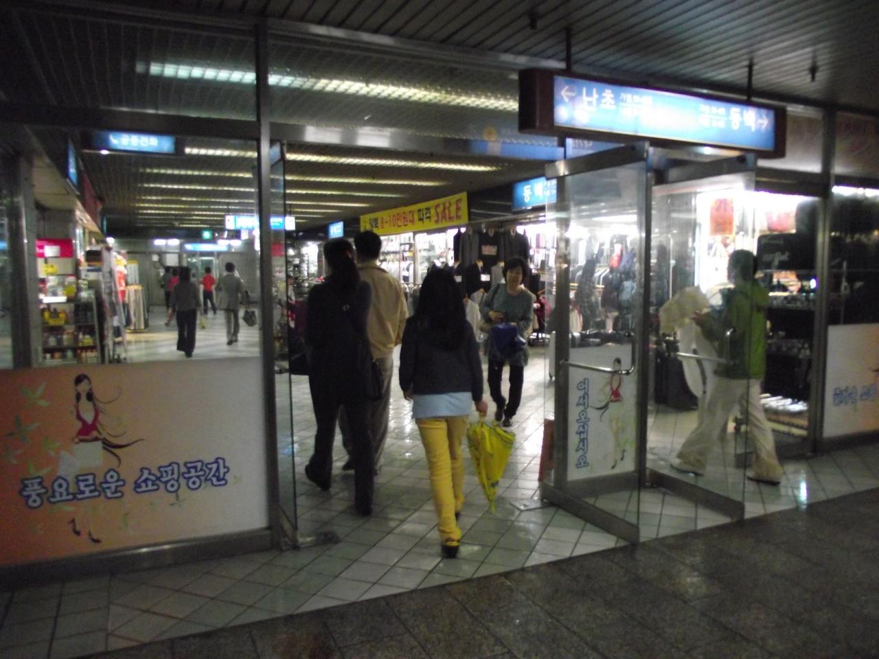 ホテルからすぐのチャガルチ駅から隣の南浦洞駅まで、徒歩15分ぐらいですが地下街を散策する事にしました。 -