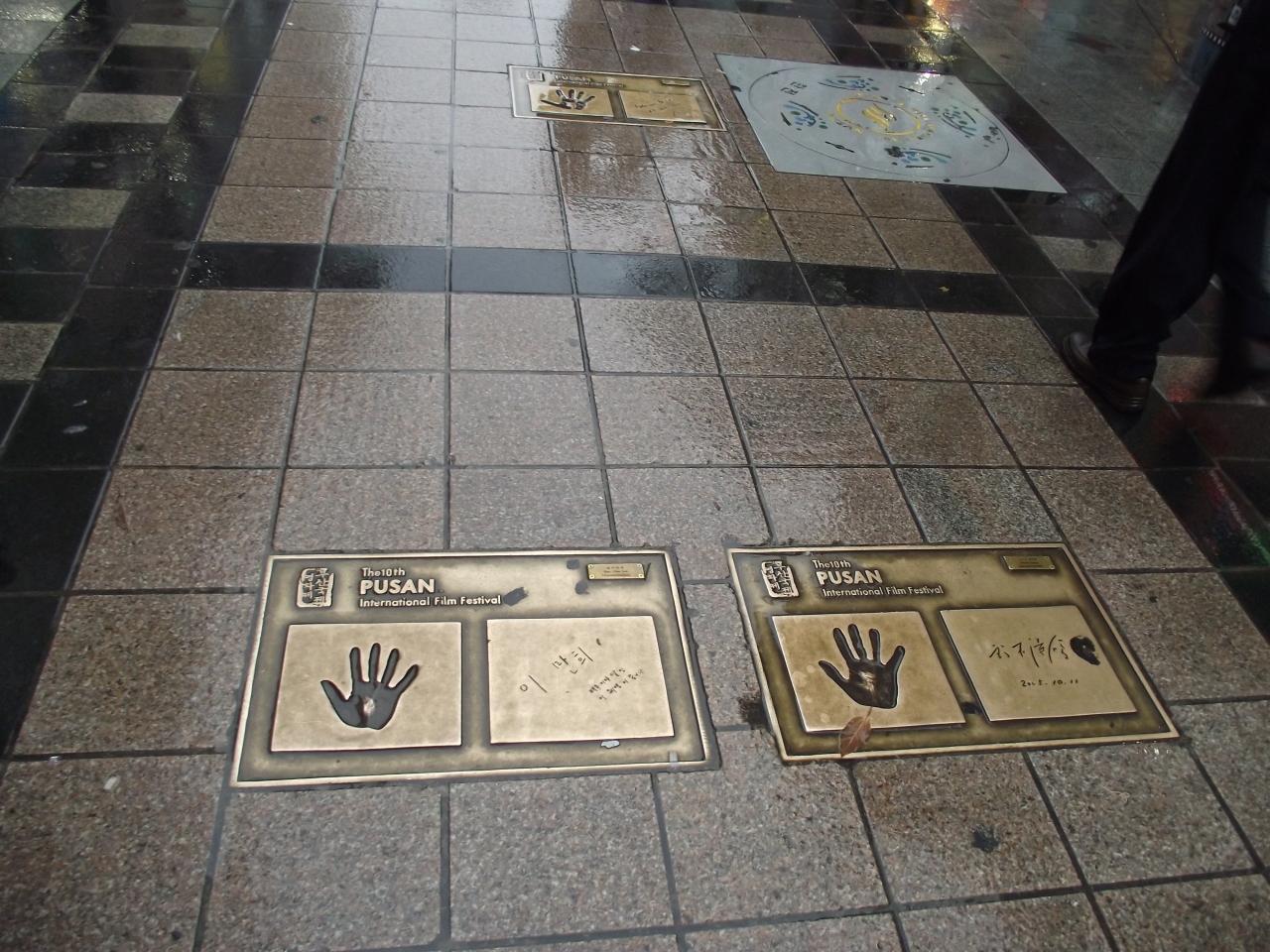 ホテルまでまたまた戻り、今度は近くに「チョッパル通り」というのがあるので行ってみようという話になりました。その途中のPIFF広場の映画関係者の手形通り。ビートたけしや今村昌平のもありました。