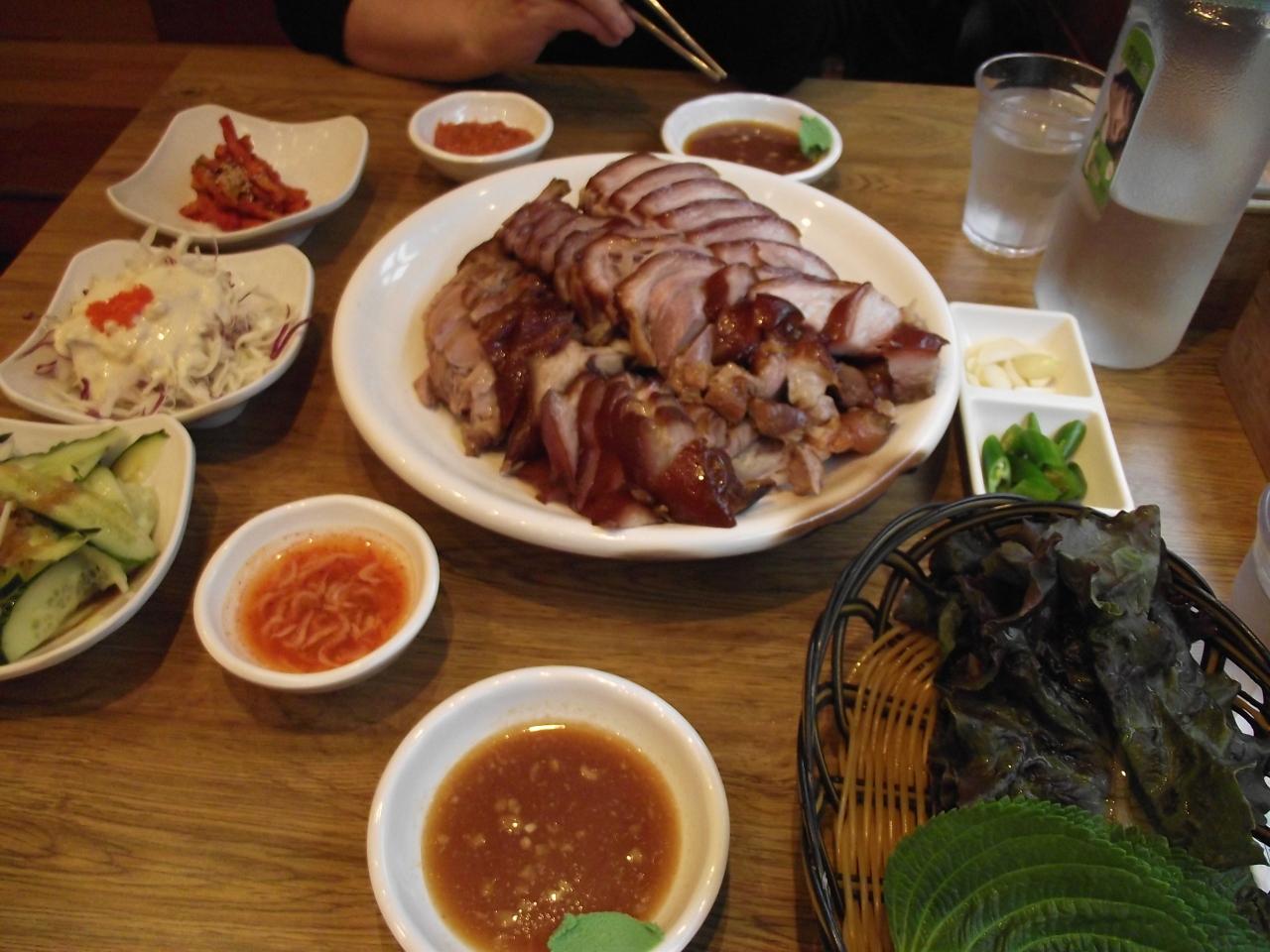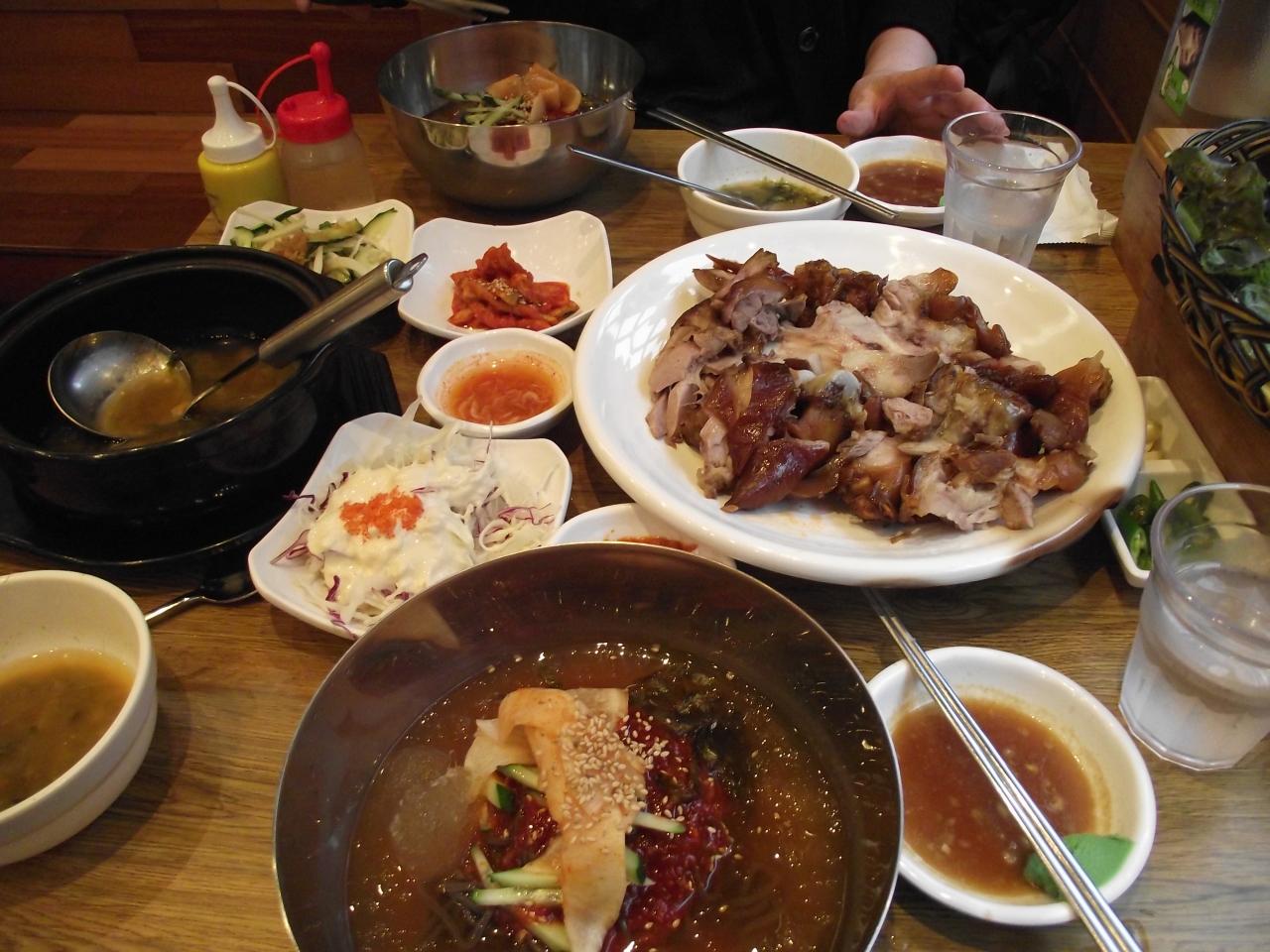 付け合わせのおかずですが、手前のポテトサラダが少し甘みが入っていて美味しいものでした。キムチは韓国ではどこで食べても美味しいです。やっぱりその土地の空気にあった食べ物なのでしょうね。