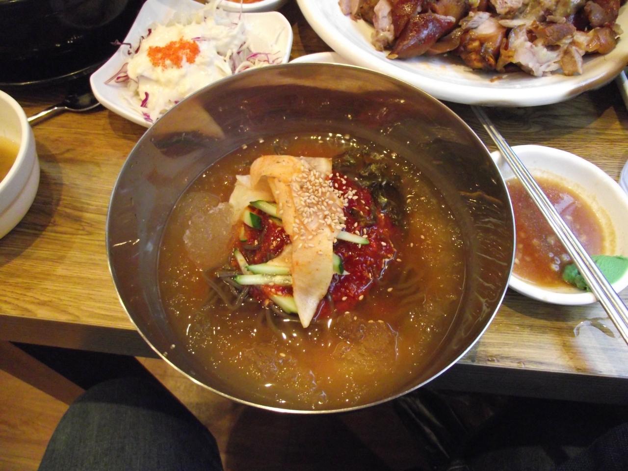 冷麺も頼みました。とても丁寧に作ってあるお味でした。冷麺の文字通り、ひんやりしていてこちらもグッドです。