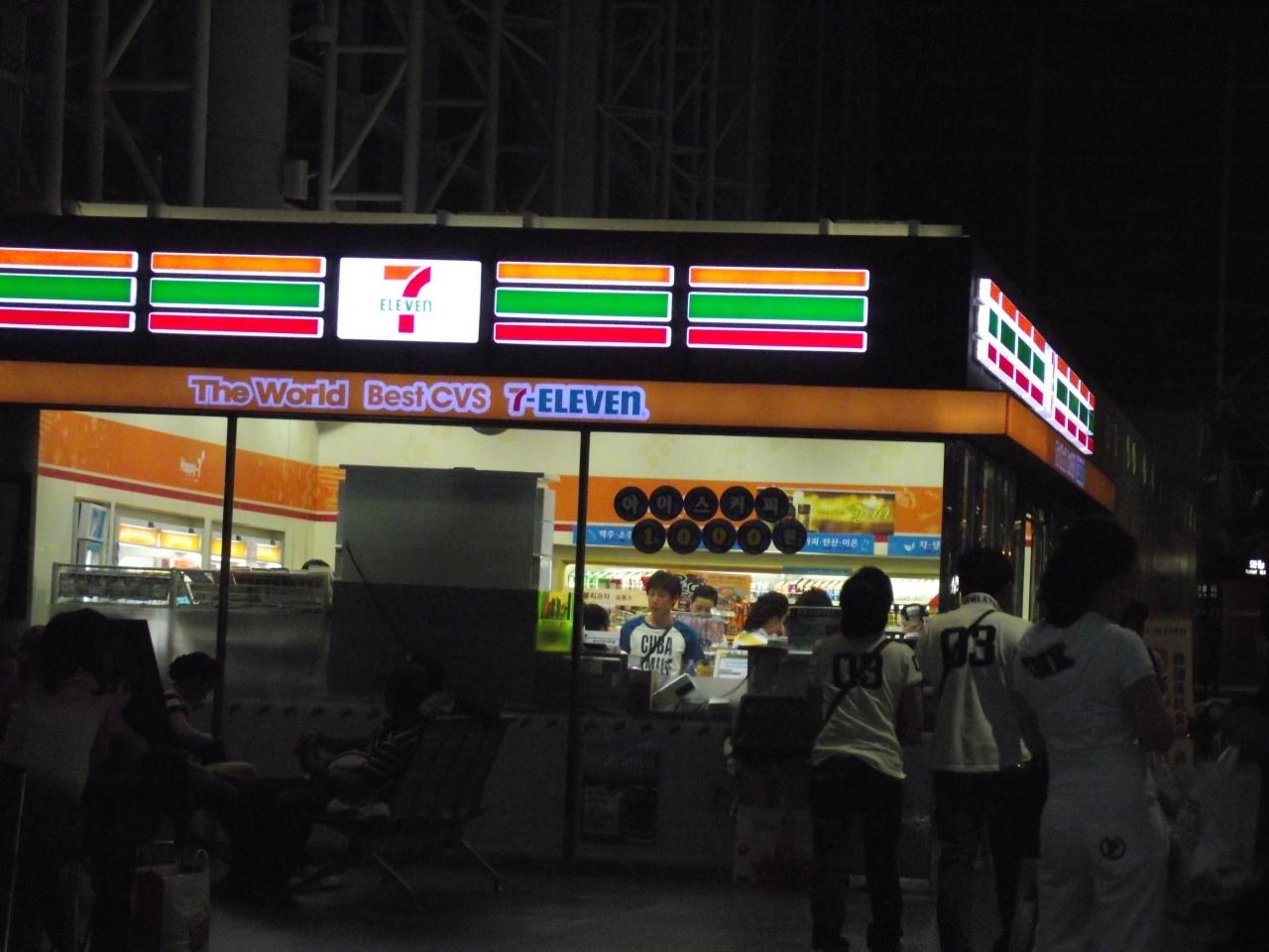 最終搭乗待合スペースには免税品店のほか、コンビニはセブンイレブンがありました。とにかく長蛇の列でした。