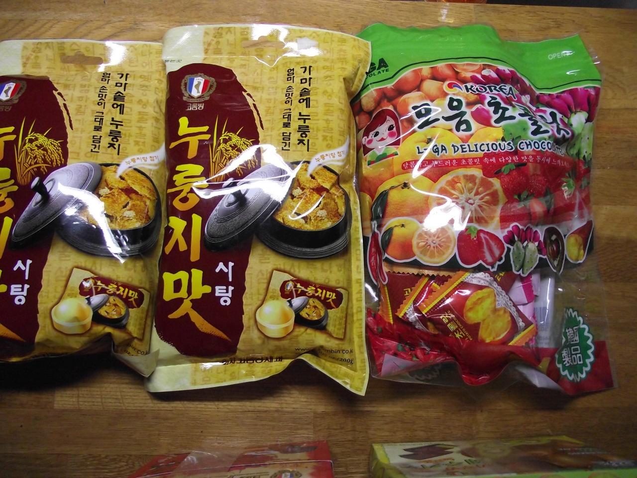 帰りの食料品でまとめ買いしたお菓子。高麗人参やユズのキャンデー、ゼリーなどいろいろ。