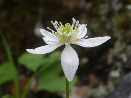 30分樹林帯をやや急な登山道をひたすら。ミツバオーレン草