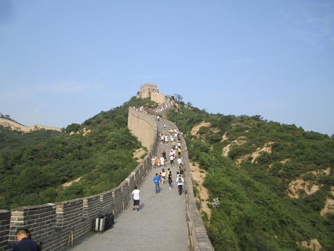 万里の長城は起伏の激しい階段や坂道を下りたり上ったりとかなり運動量を要します。もし雨だったら、上まで行けたかどうか?