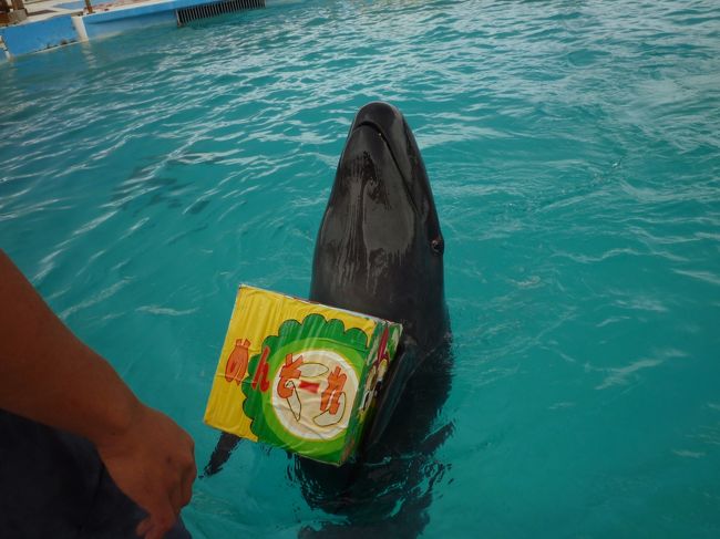 観客近くの舞台にも1匹で自力で登るシャチ君