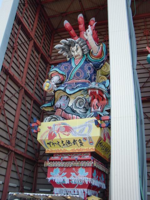 駅脇の格納庫に 立佞武多。
