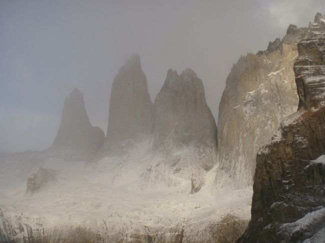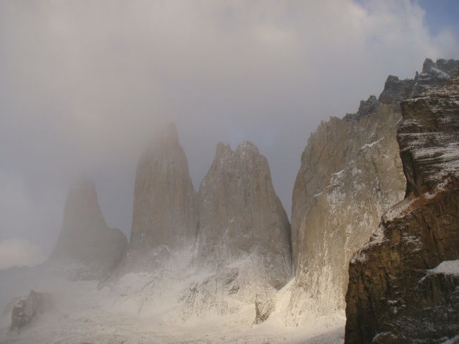 美しい日の出を拝むことは出来なかったけど、途中霧が晴れ3本の塔「トーレス・デル・パイネ」がくっりき見えるときがあった。今日はこれが見えただけで大満足だった。