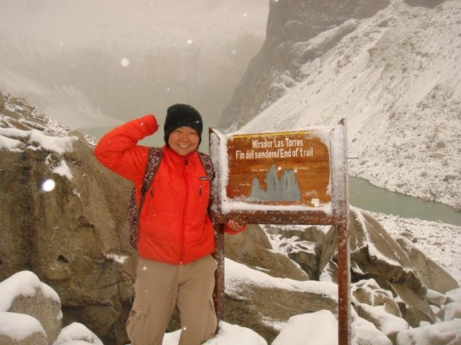 「トーレス・キャンプ場」までの下り坂がかなり大変だった。雪道で凍っている所もあれば、ドロドロで滑る所もあり、うちらの靴は誰もが驚くスニーカー!!みんなトレッキングシューズなだけに、何人のトレッカーにビックリされたことか(笑) ヘザーにヘルプしてもらいながらようやくキャンプ場まで戻ってくることが出来た。