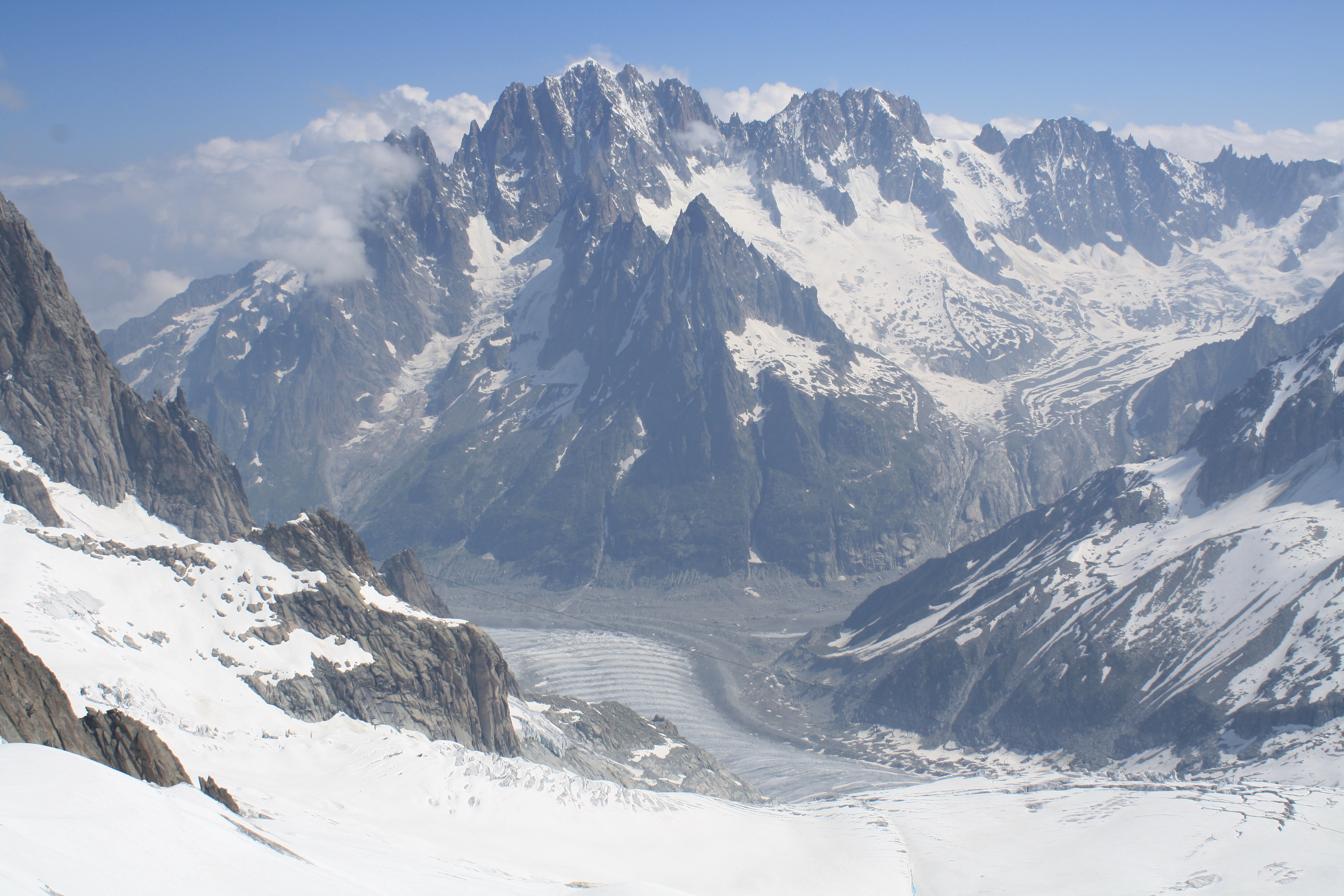 右側上部の尖った山はグランド・ジョラスです。