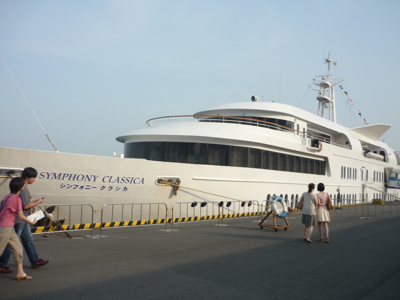 日の出桟橋から出航するシンフォニークラシカにてディナークルーズ後花火を船上から見ました。