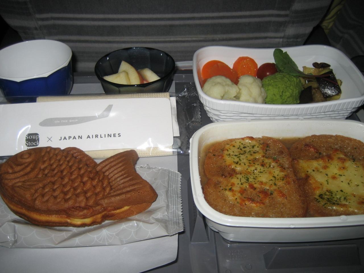 エコノミーの機内食はスープストックトーキョーとのコラボでオニオングラタンスープでした。