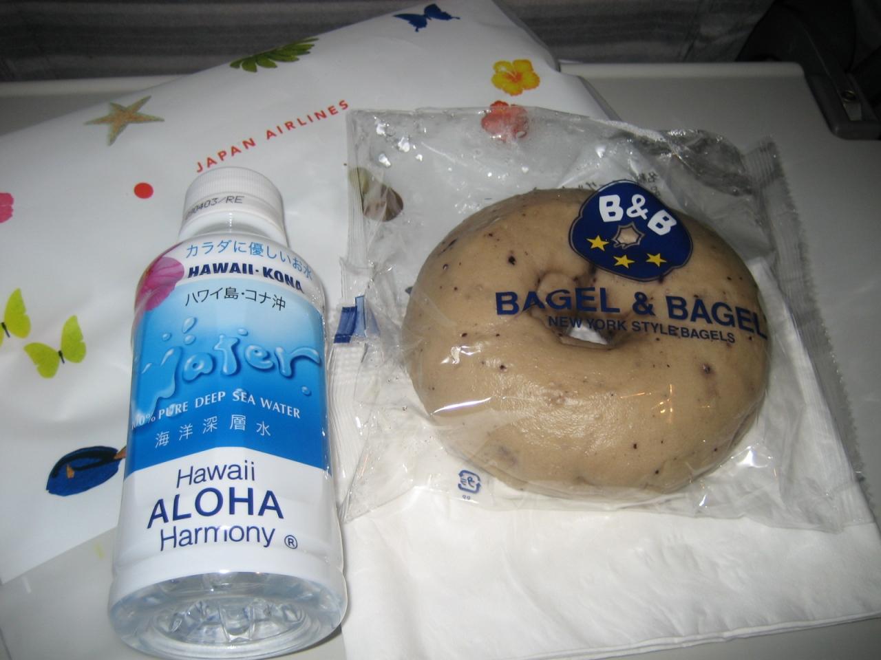 朝食用(?)にブルーベリーベーグルとお水が入ったバッグが配られました。