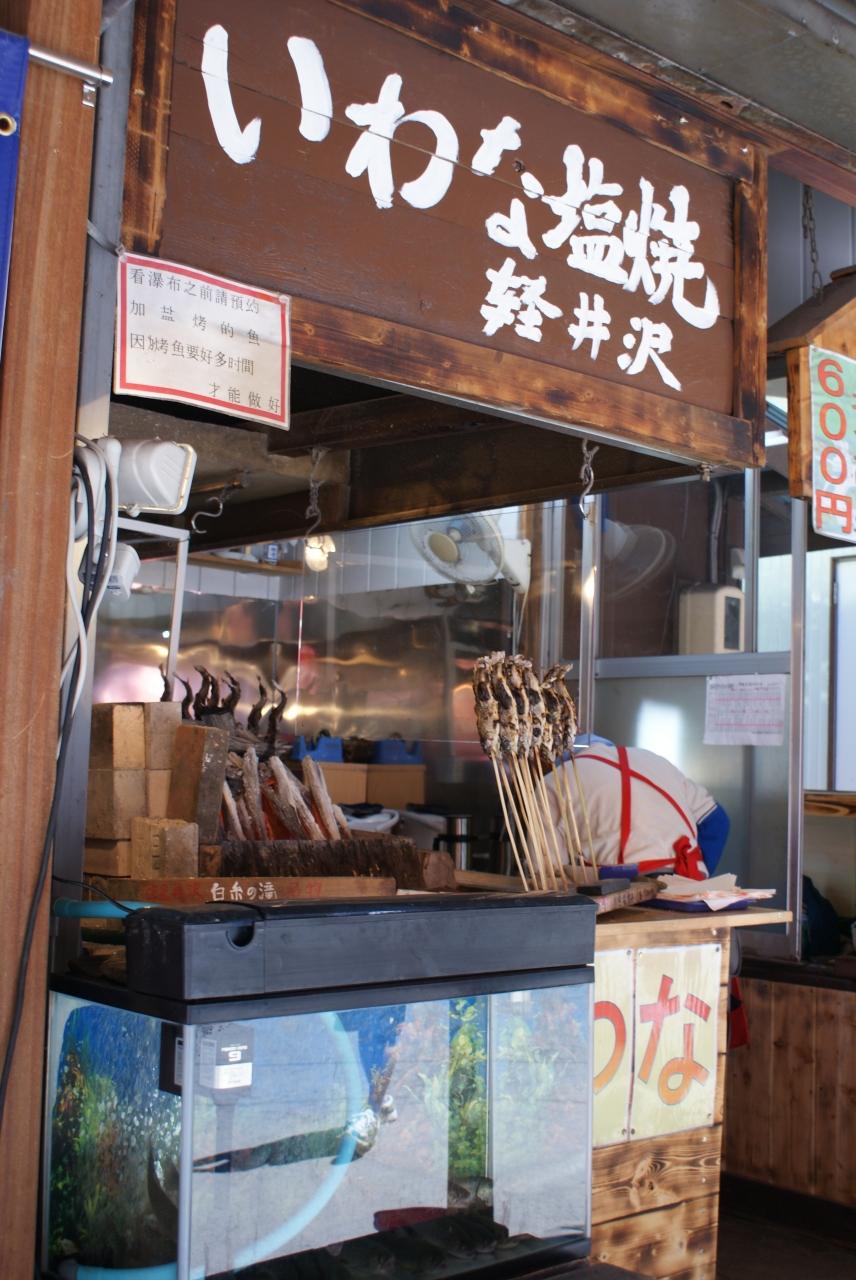 駐車場横にはお土産や食べ物屋さんの中にいわな塩焼きを発見♪
