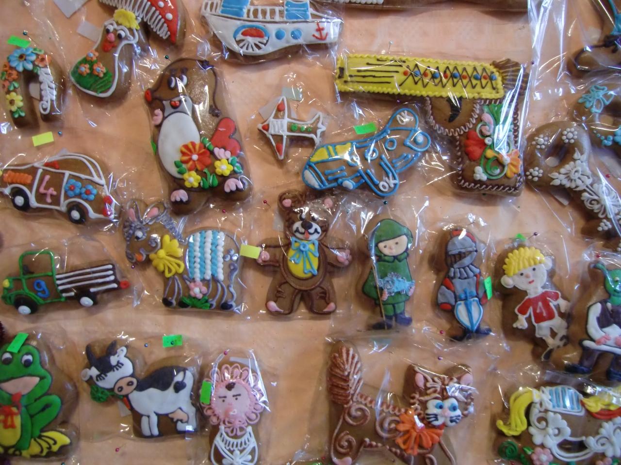 リトミシュル城もフレスコ画できれいですが、ここはショウガクッキーが有名とのことで、結婚祝いその他でもいろいろ飾ったクッキーを使用するそうです。味見すると懐かしい田舎で食べたクッキーのようです。日持ちが良く、かわいいので飾る目的やおみやげで購入する人が多いようです。 -