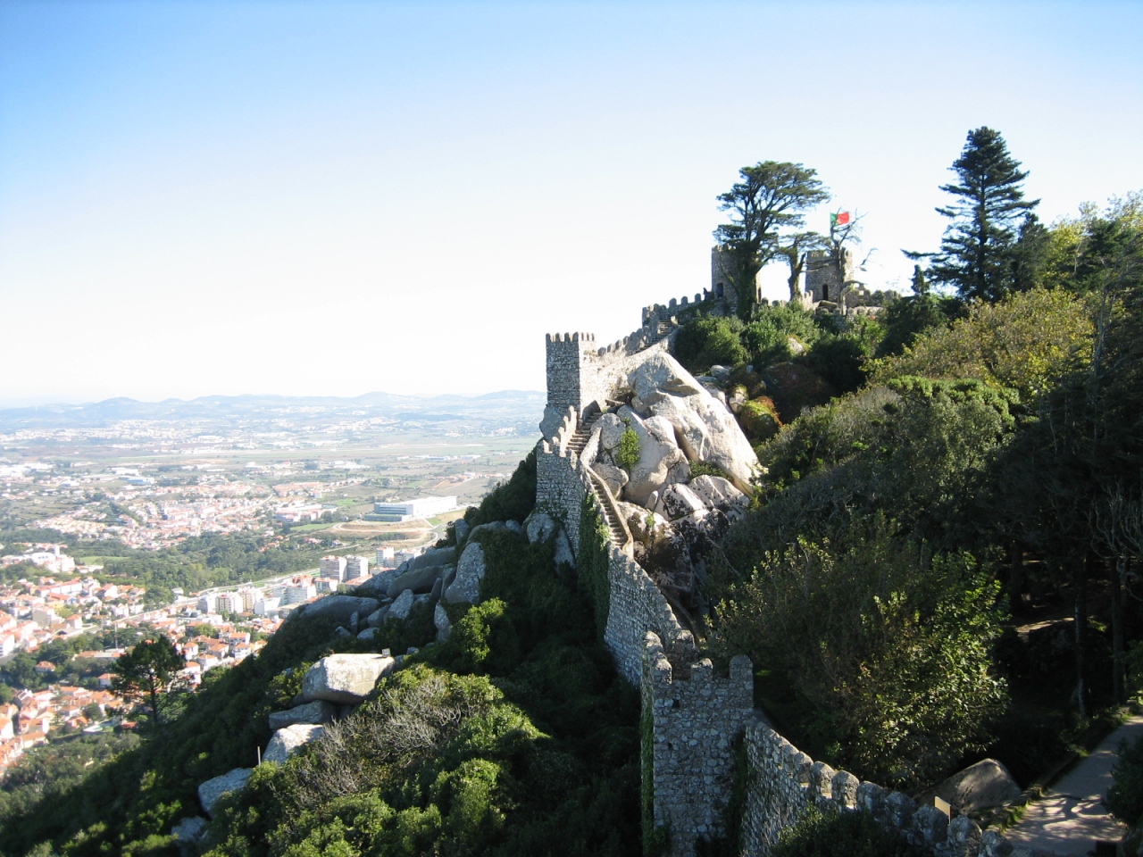 城壁に登ると、シントラの町から遠くの方まで一望の下です。