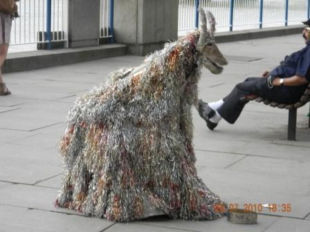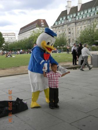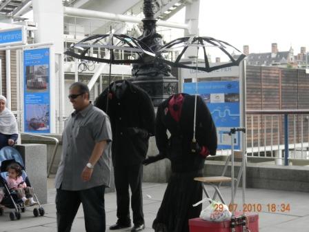 ロンドンアイの周りは観光客で一杯なので、こういった大道芸人もたくさんいます。この顔ナシ人間タイプはロンドン中の観光地どっこでも見かけました。