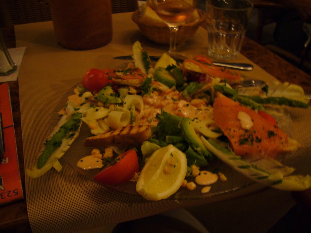 夕食はニースに戻ってニース風サラダを。