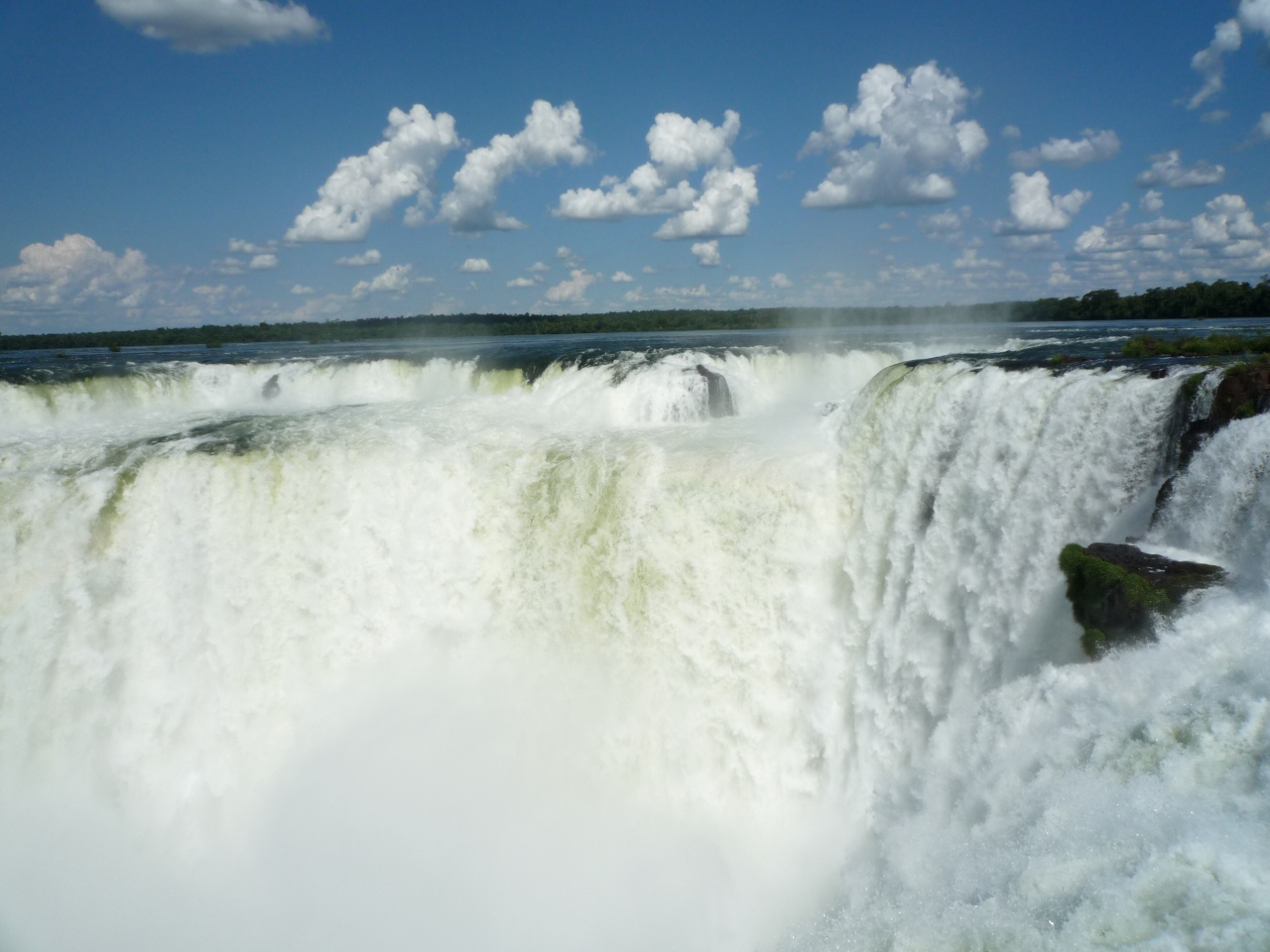 イグアスの滝は最大落差80メートル、滝幅4kmでアルゼンチンとブラジル、パラグアイの3国の国境にある。イグアス【IGUAZ】とは原住民のグアラニー族の言葉で水【IGU】 すばらしい【AZU】ということらしい。イグアスの滝は1984年にアルゼンチン側が、1986年にはブラジル側がユネスコ世界遺産に登録された。
