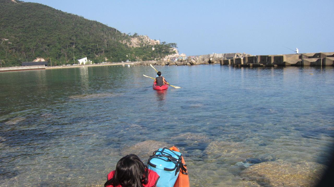 こちらの岩場から漕ぎ出そうか?