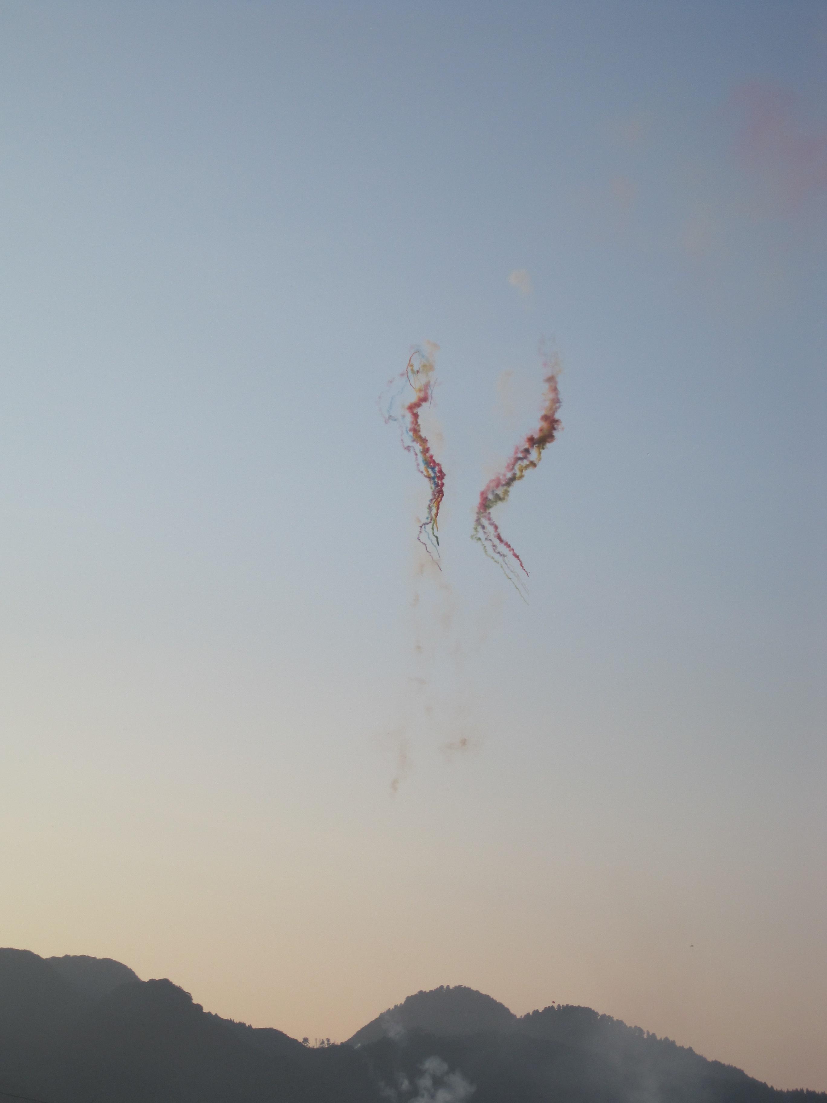 昼花火は迫力はないものの、暮れていく空にキレイに色が映って美しかったですよ〜。
