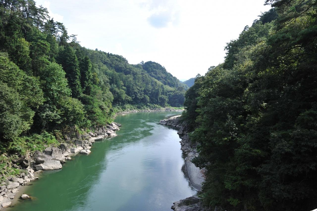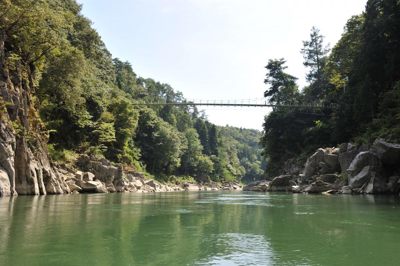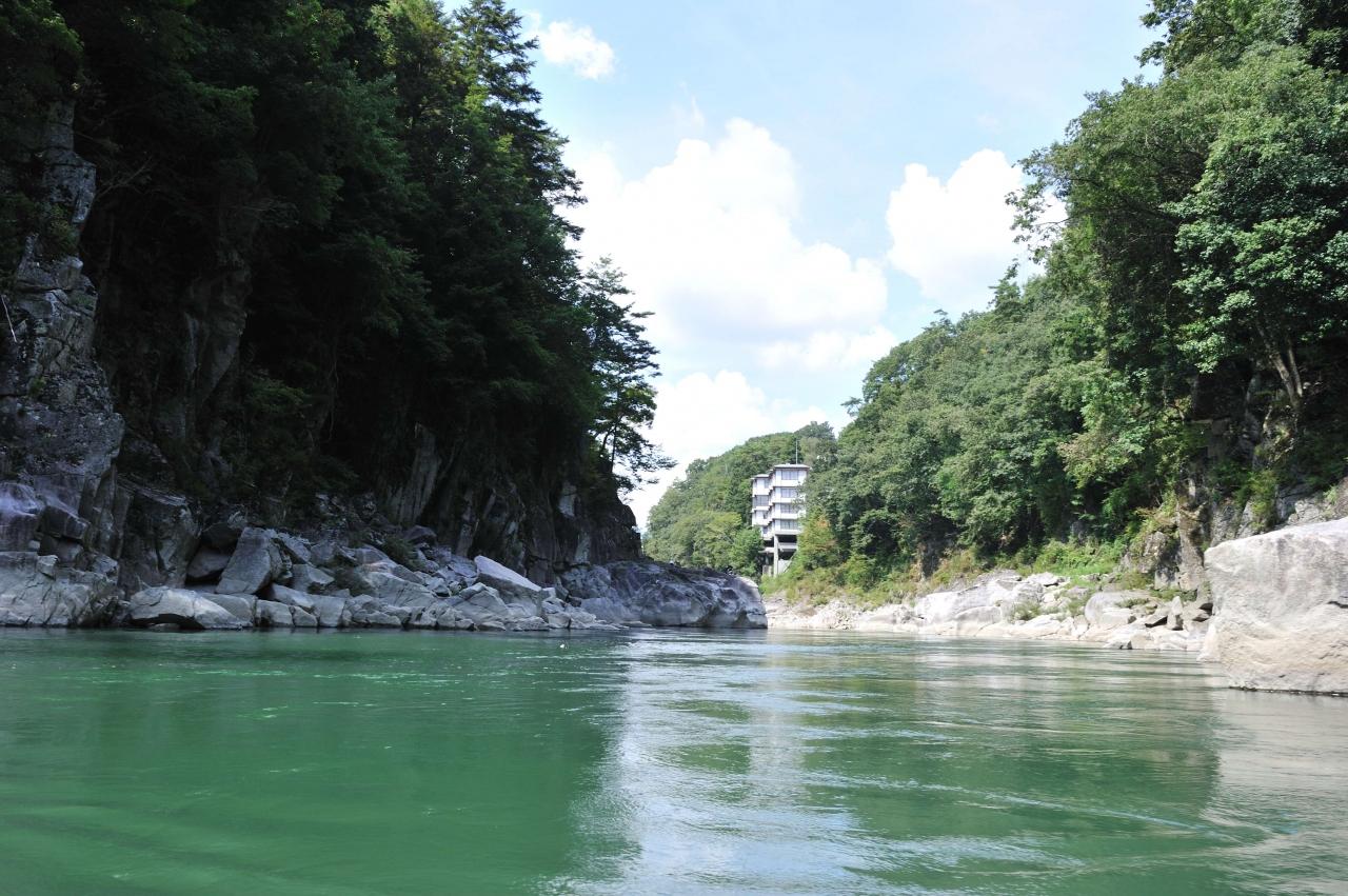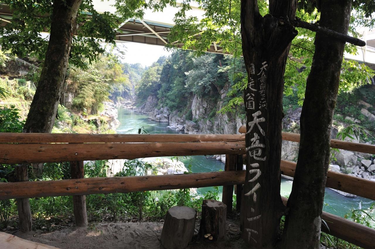 ライン下りの乗り場に下りていくと、天竜峡が見えてきます。