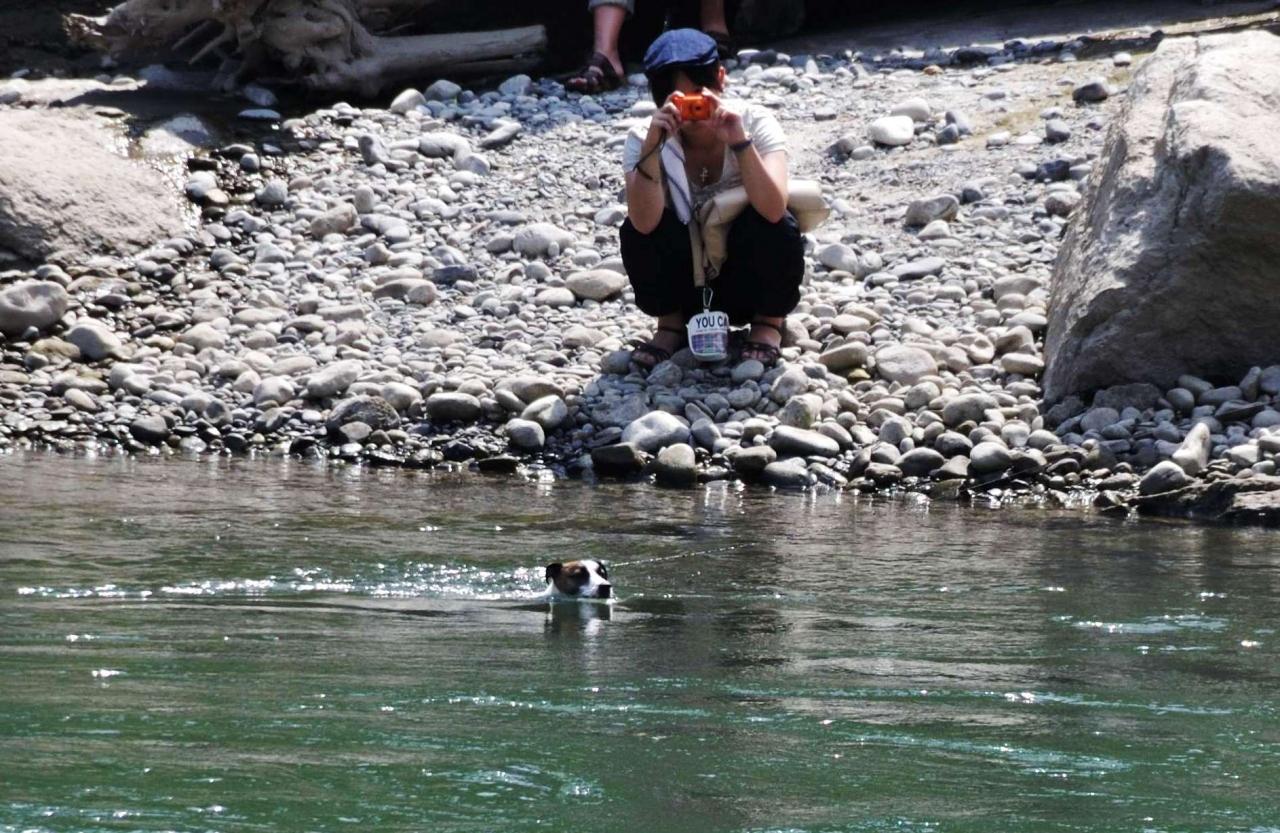 向こうの岸ではワンちゃんが嬉しそうに泳いでいました。