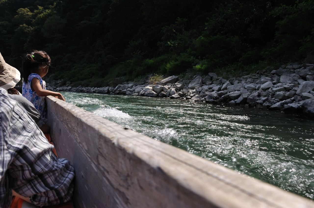 天竜川にはライン下りと舟下りがあり、ライン下りは下流側で、緩やかな流れを周りの景色を見ながらゆっくり下りました。