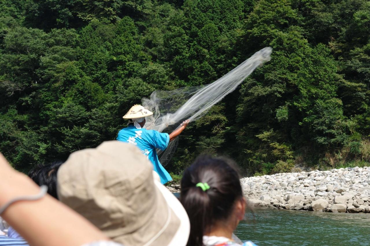 時々船頭さんが網を打ちました。一度一尾入りましたが、リリースしました。