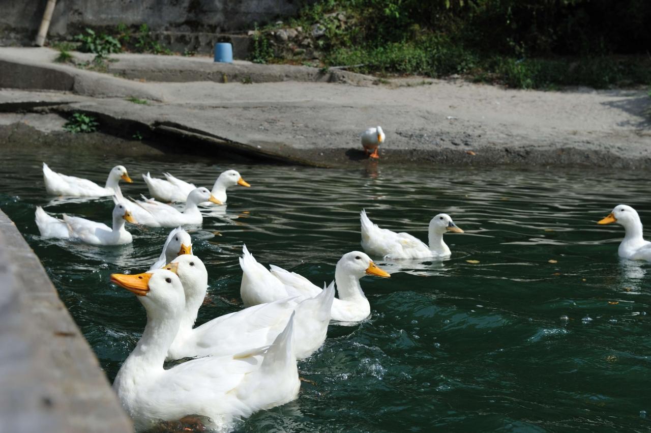 アヒルが船内で配られたおせんべいを待っていました。 -
