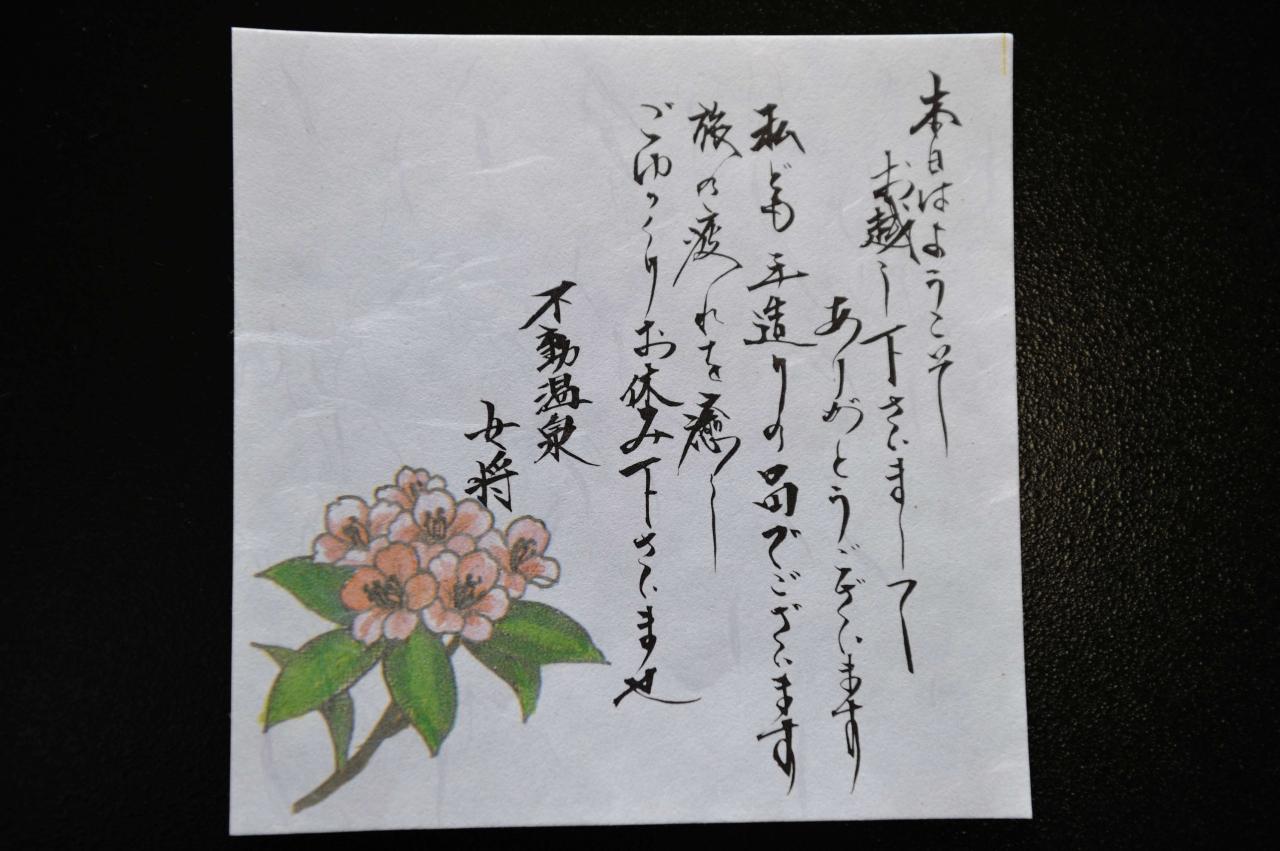 部屋に入ると女将からのメッセージが置いてありました。心遣いを感じます。