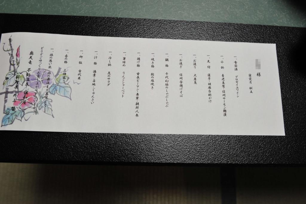 夕食の献立で、女将の手書きだそうです。