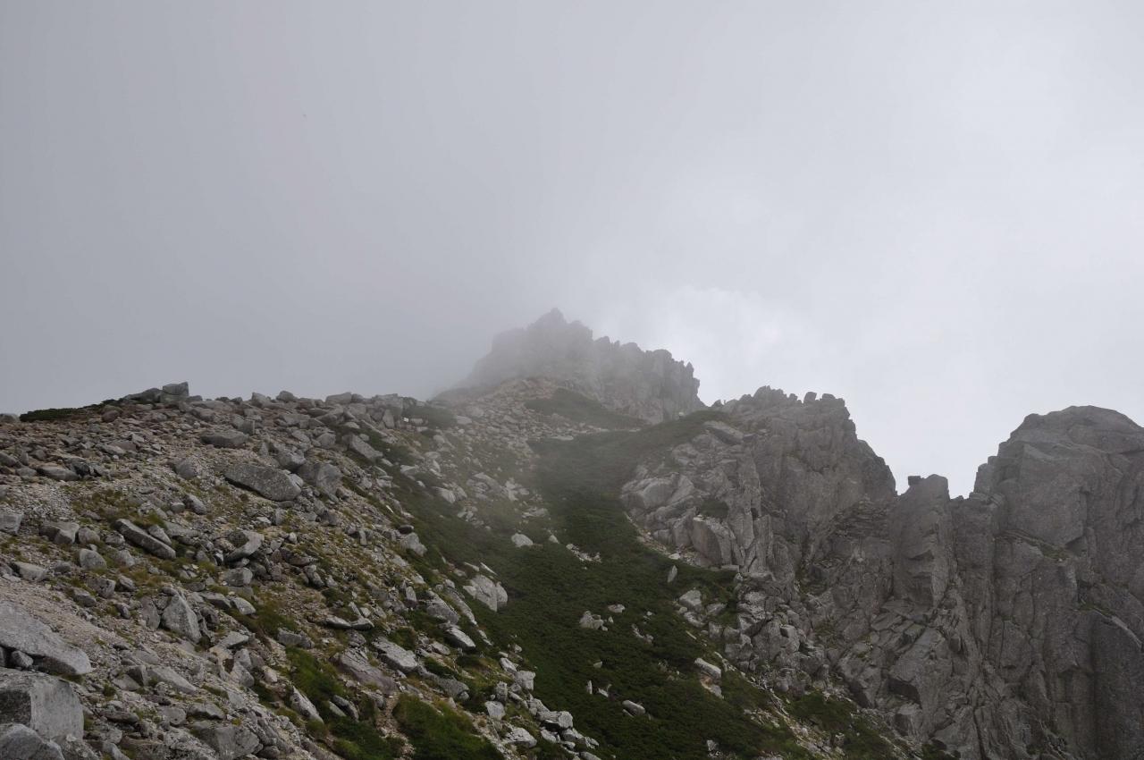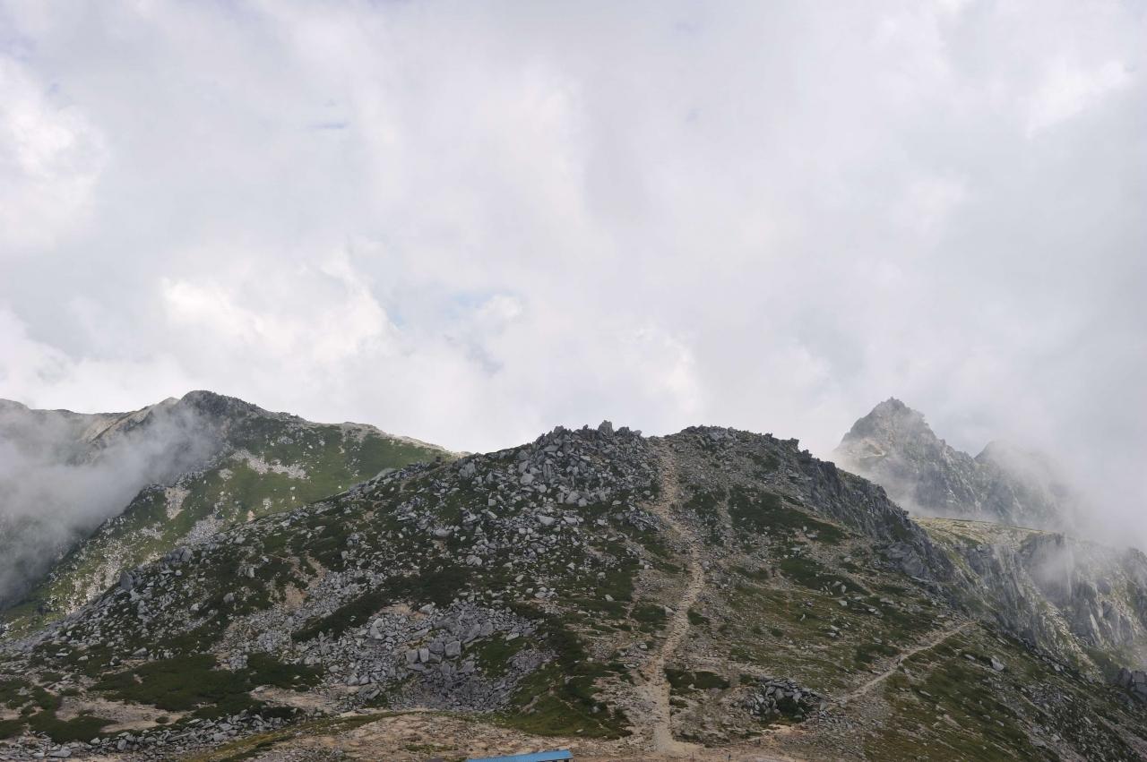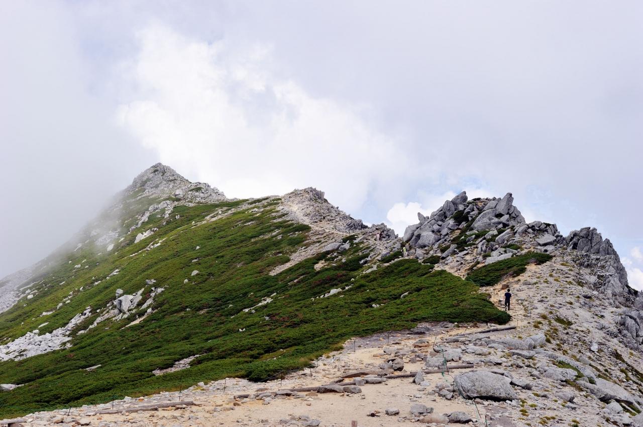 中岳を降りて、乗越浄土あたりで伊那前岳のガスが取れてきました。