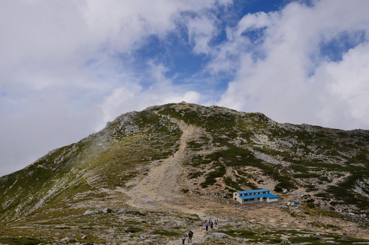 青い屋根は駒ケ岳頂上山荘です。 -