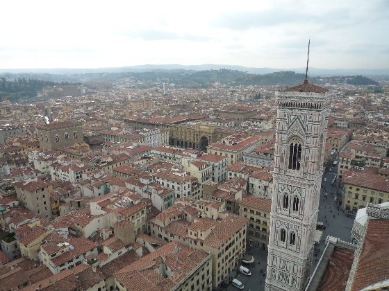 クーポラに上ると、ジョットの鐘楼を見下ろすことができます。