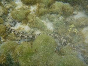 ホテル前のビーチの浅いところにも、海の中にはこんなふうに海へびなんかも普通にいます。